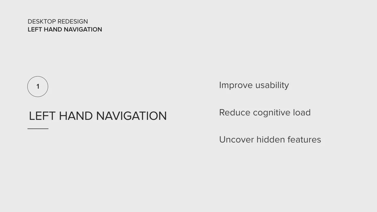 DESKTOP REDESIGN- LEFT HAND NAVIGATION