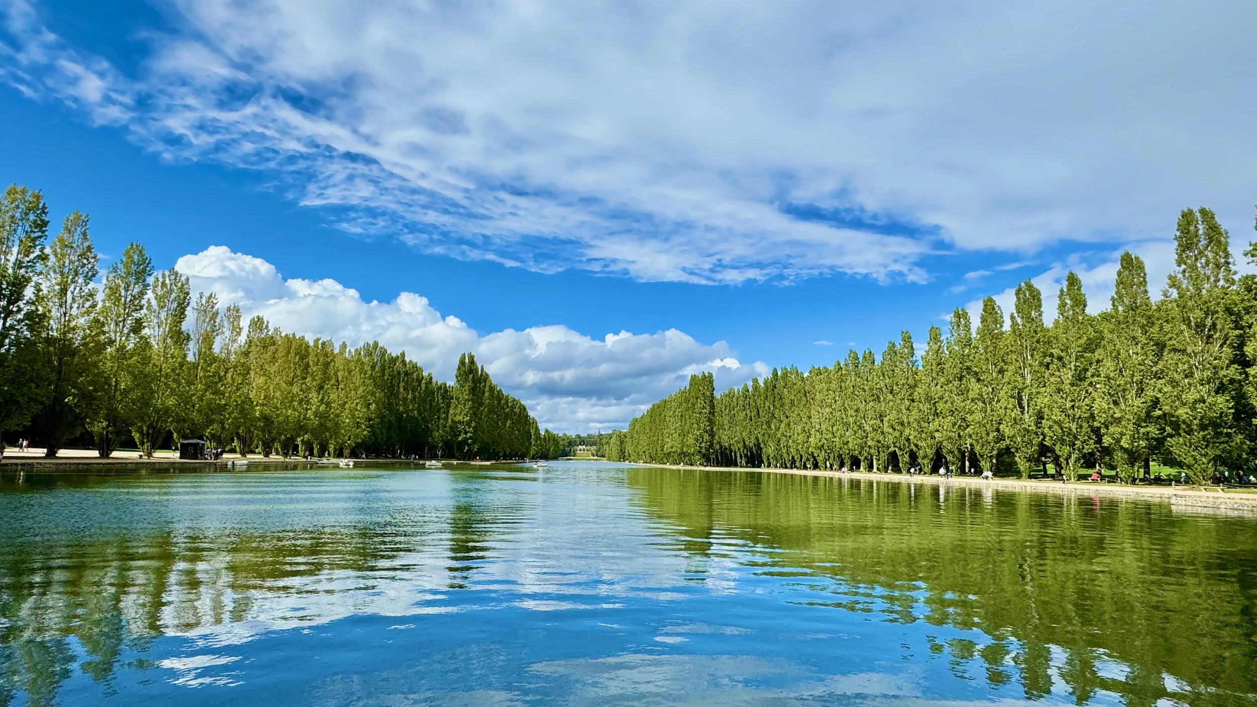The winding path for both road and river bends in the same angle creates a historically interesting parallel: The River used to be the main transportation, vs the street, which is now the main vehicle for transportation.